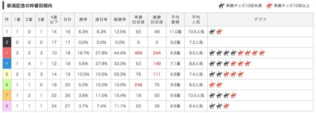 新潟記念の枠番別傾向