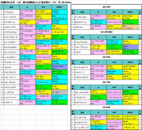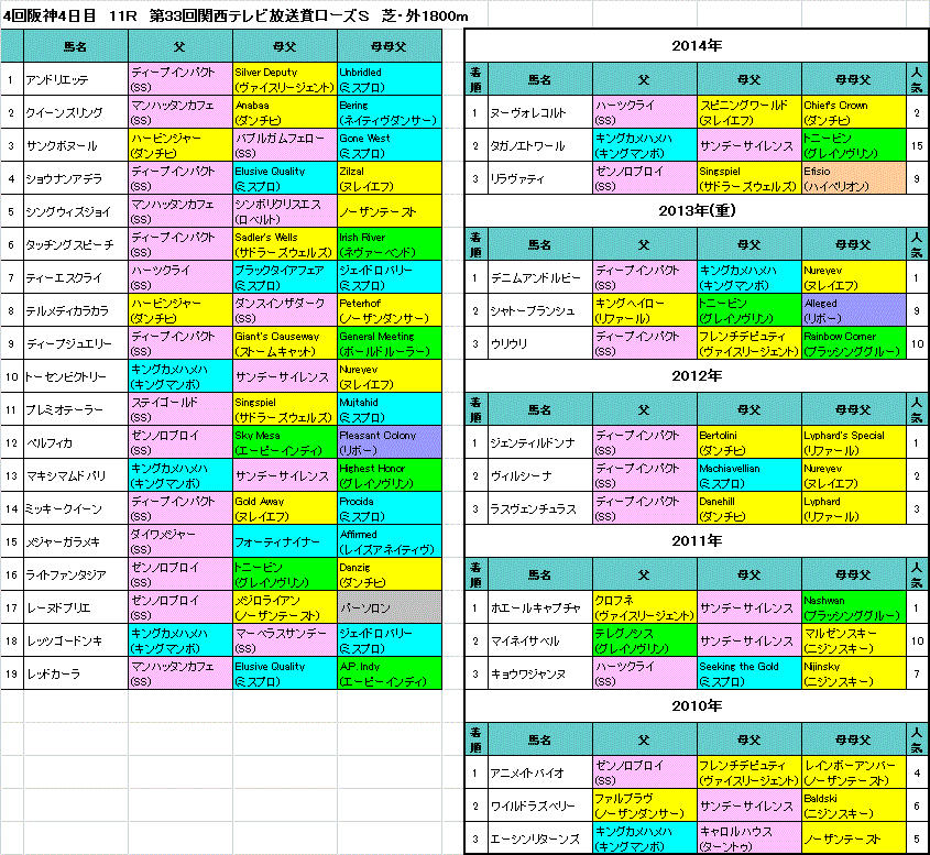 ローズS(2015)の登録馬と過去5年の血統傾向