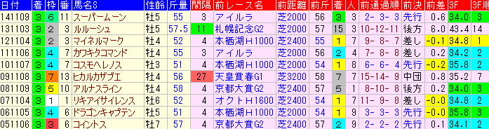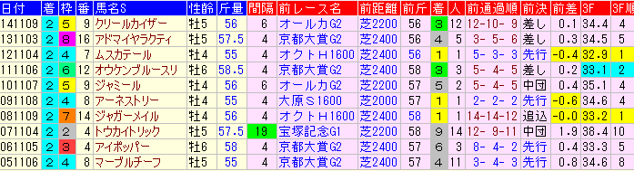 | 前走 | 1着馬 | 2着馬 | 3着馬 | |||