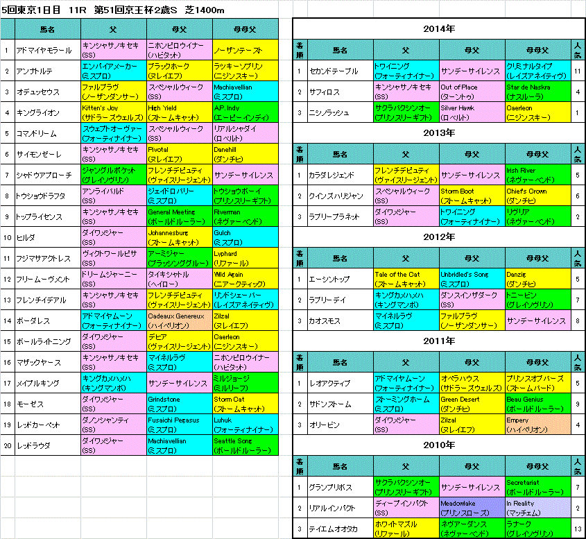京王杯2歳S(2015)の登録馬と過去5年の血統傾向