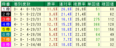 ここでは、KBS京都賞ファンタジーS過去19年の枠番別成績と、