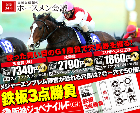 『ホースメン会議』の重賞予想は新規限定特典になるので以前に登録したことある方は他のアドレスで参加するか新しくヤフーなどのフリーアドレスを作ってから参加してみてください。