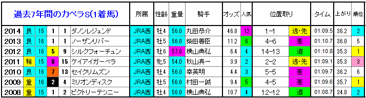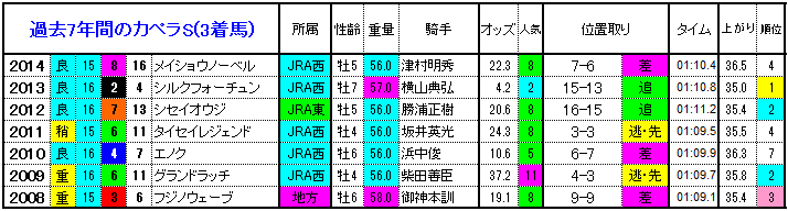 | 7歳 | 0- 0- 1-13/14 | 0.0% | 0.0% | 7.1% | 0 | 14 |
