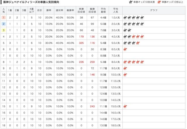 基本的には単勝オッズ15倍以内の馬が1着になります