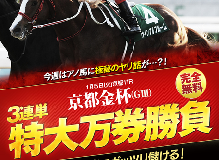 そして、今回初めてこのサイトに参加される方に限り、京都金杯の『激穴3連単』を無料公開!この機会をお見逃しなく。
