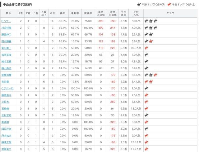 中山金杯の騎手別傾向