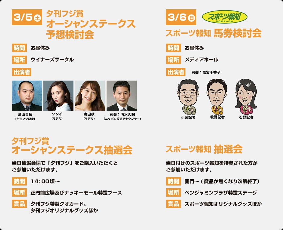 また夕刊フジにて競馬予想の連載を持ち、競馬場イベントにも多数出演