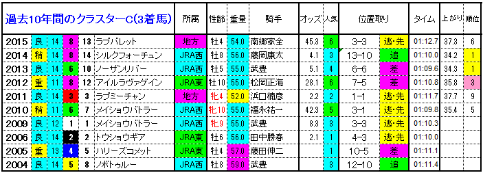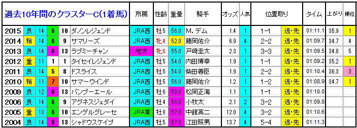 ※コーナー通過順位| 年度 | 場 | 数 | 1着馬 | 2着馬 | 3着馬 | タイム |