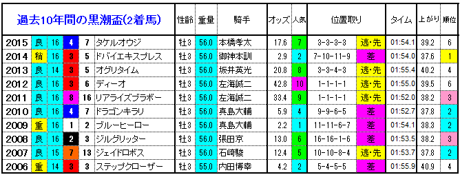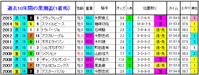 ※コーナー通過順位| 年度 | 場 | 数 | 1着馬 | 2着馬 | 3着馬 | ペース | タイム |