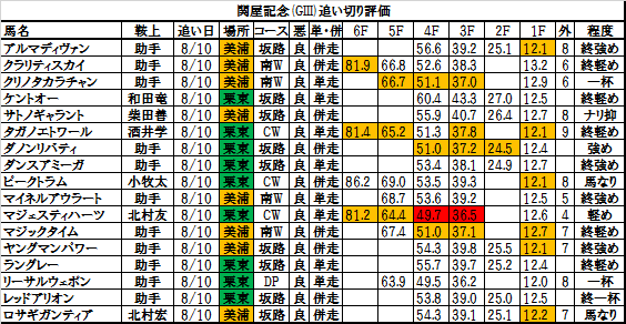 …この血統らしい感じでピッチをしっかりと利かせながら軽快に最後まで走り切っている。全体を出しながらも再加速で楽にというのがこの馬の良いところで、追い切りでもこのラップで余力を持って反応できているし、いいと思う。