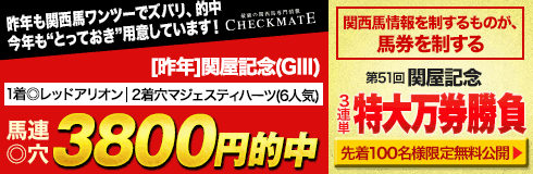 的中馬券に直結する関西馬情報を専門に扱う【チェックメイト】だからこそ入手できる大ヤリ関西情報さえあれば、今年の関屋記念でも特大万馬券が狙える!!