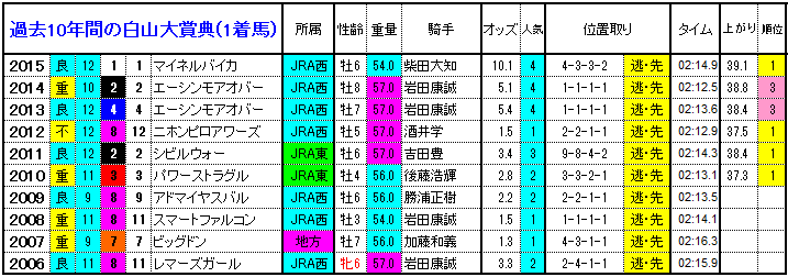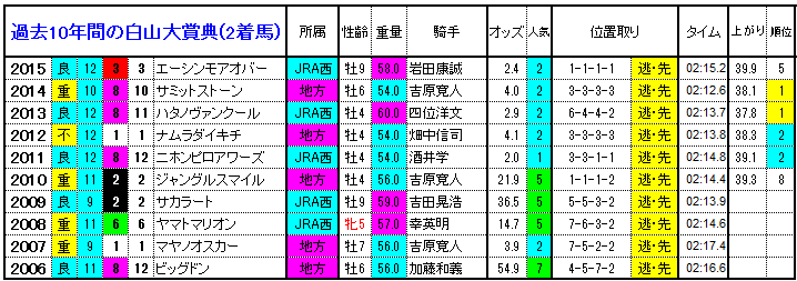 | 2015 | JRA西 | JRA西 | JRA西 |