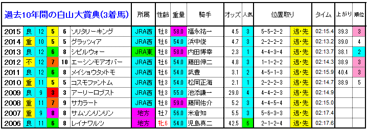 | 2015 | 良 | 12 | 4-3-3-2 | 1-1-1-1 | 5-5-2-2 | 02:14.9 |