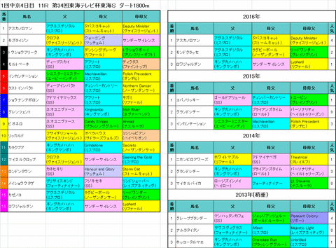 東海S(2017)の3代血統出馬表