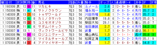 ⇒ | 3 着 馬 |