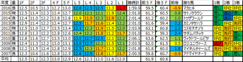 脚質別に見ると近年は差し馬が4連勝となっているし全体で見ても比較的強いが、ポテンシャル戦になると少し後ろからでも差し込むチャンスが出てくるというところ。ただそれでもある程度の位置にはつけられないとズドンと抜けきるのは難しい。 中団前後でロンスパにも対応できる、要所でも動けるというような後半型が理想だろう。昨年も含めてハイペースになったとしても中盤で緩むことが多いので、基礎スピードはあまり問われないとみてよさそう。