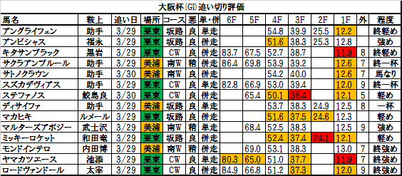 …全体のペースが速い中でしっかりと併走馬を追走、そのまま特に促されるということもなく楽に取り付いて最後少し動かされたが減速せず。特に前肢の手先の返しが軽くて最後の方は弾んでいるようなフットワークだった。良いはず。