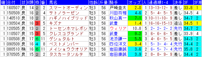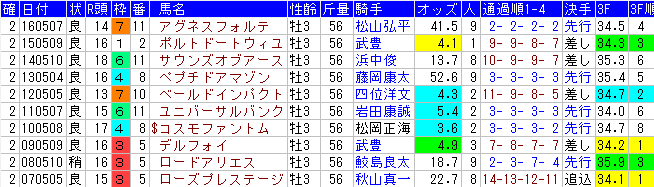 | 3F 1位 | 2- 2- 2- 4/ 10 | 20.0% | 40.0% | 60.0% | 34 | 142 |
