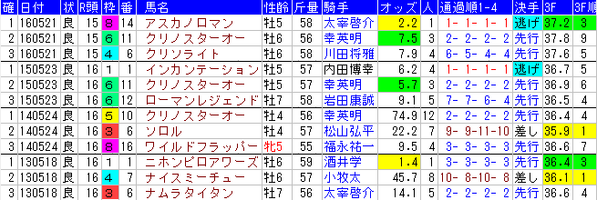 | 2015 | 良 | 16 | 1- 1- 1- 1 | 2- 2- 2- 2 | 7- 7- 6- 4 | 01:55.1 |