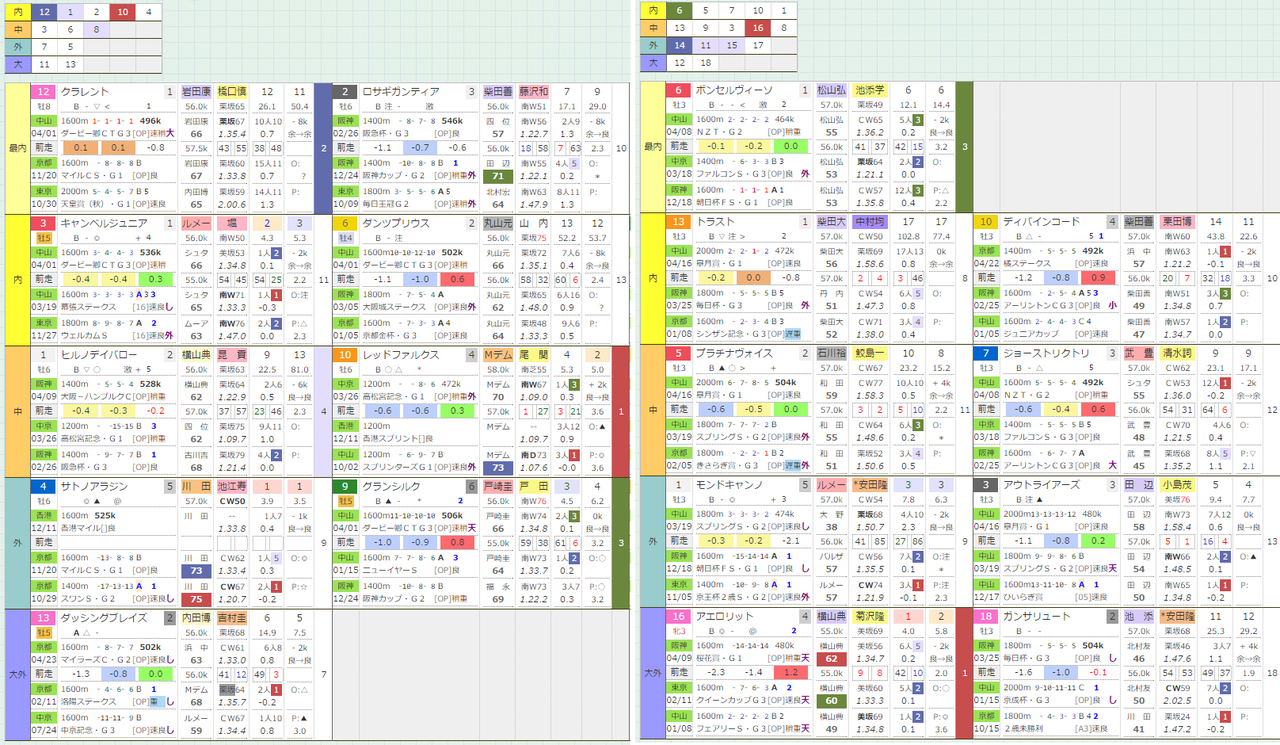 今年のヴィクトリアマイルも同じ表で見てみると。