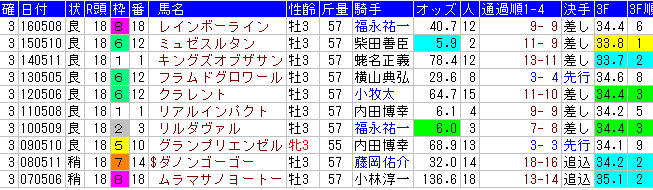 | 2010 | 良 | 18 | 16-16 | 7-5 | 7-8 | 33.4-35.1 | 01:31.4 |