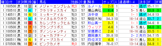 | 2016 | メジャーエンブレム | ロードクエスト | レインボーライン |