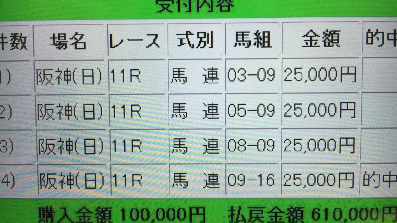 昨年の宝塚記念4点的中で61万円の払い戻し!