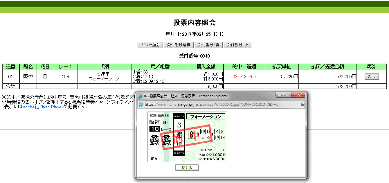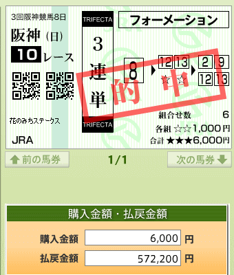 A PATになら万馬券証明書が残る訳で、その方にはメールで送りました。