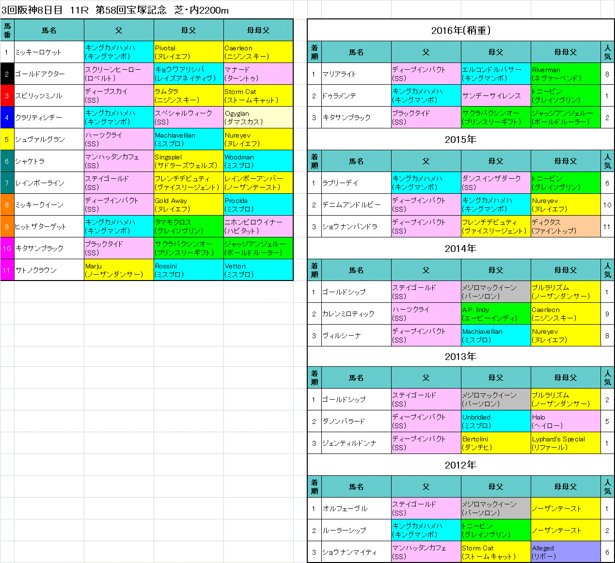 今週日曜日は宝塚記念G1。
