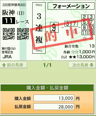 昨年の馬券