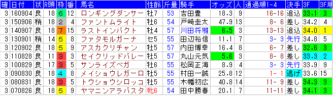 | 2012/9/2 | 良 | 18 | 9-9 | 3-3 | 6-7 | 35.8-33.1 | 01:57.6 |