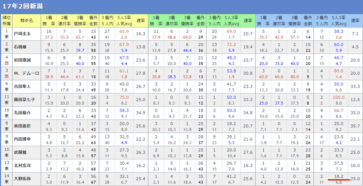 新潟であれば、明日最も馬が揃っているのが大野拓弥騎手。