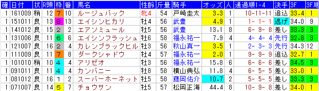 | 2015/10/11 | 良 | 13 | 1-1-1 | 5-5-5 | 4-5-5 | 35.9-34.0 | 01:45.6 |