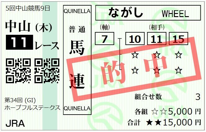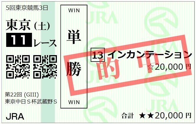 (単勝230円)的中!