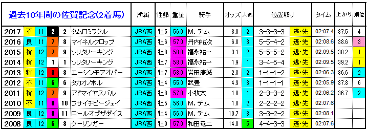 | 年度 | 1着馬 | 2着馬 | 3着馬 |