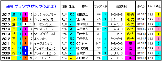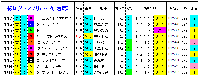| 年度 | 1着馬 | 2着馬 | 3着馬 |