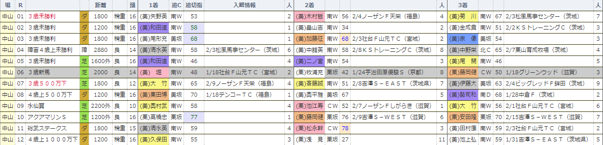 昨年の2回中山、1回阪神開幕週の「位置取りビューワ」は