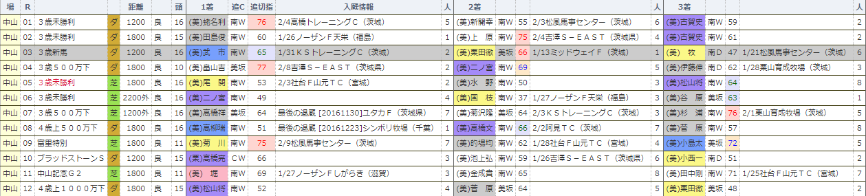 東京→中山で最も顕著なのは田辺裕信騎手でしょうね。