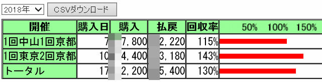 2018年(1回&2回の2開催月連続(前年から7開催月連続)プラス収支)