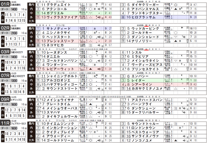 本日はJRAと平行して高知競馬場と沙田競馬場がある忙しい1日。