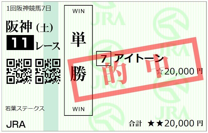 ◎アイトーン 単勝4500円 的中!
