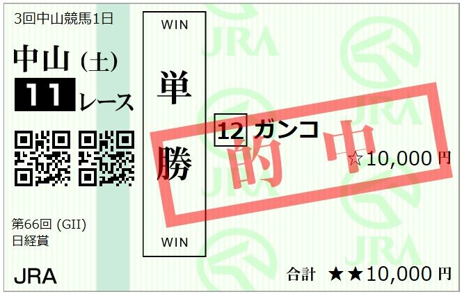 ◎ガンコ 単勝540円 的中!