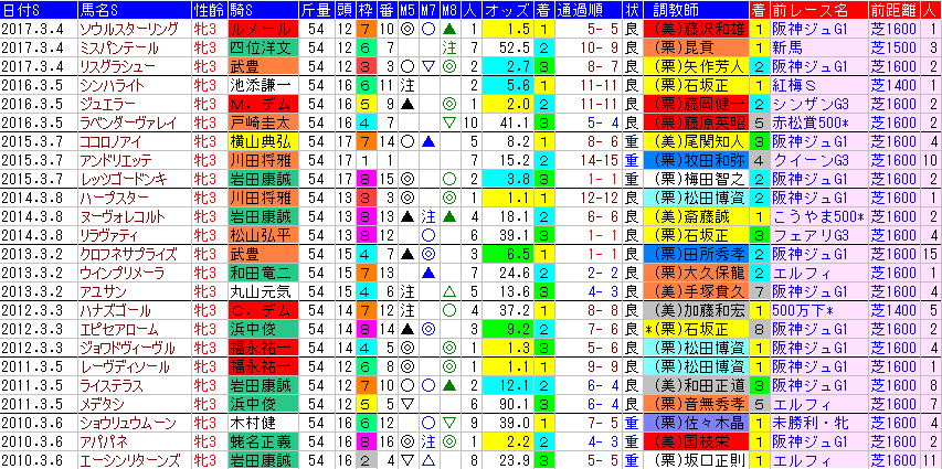・チューリップ賞 過去成績・過去の位置取りシート