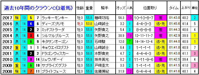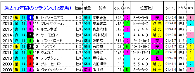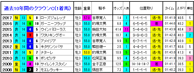 ※コーナー通過順位| 開催日 | 場 | 数 | 1着馬 | 2着馬 | 3着馬 | ペース | タイム |