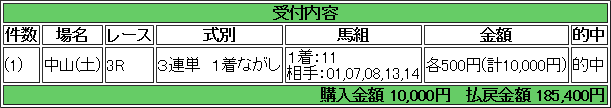 3月25日(日)中山 7R 4歳以上500万下 1778.2倍(*´∇`*)