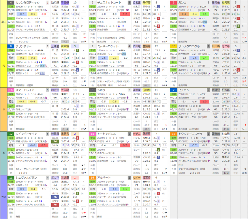 ・天皇賞(春)・青葉賞 過去のコンビニ版位置取りシート
