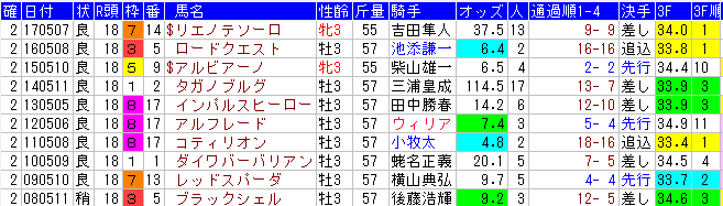 | 開催日 | 場 | 数 | 1着馬 | 2着馬 | 3着馬 | ペース | タイム |