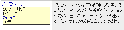 また、競馬ラボ(競馬サイト)での自身コラムでも桜花賞プリモシーン回顧を長々展開しているのですが、そこでも『どんどんテンションが上って嫌な感じ』『集中力も欠いた雰囲気』『精神的な課題が出て』などと馬の問題を指摘するばかりで、自身の騎乗云々については一言も一文字も触れていません。