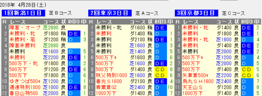 京都…土はやや内有利、日はイーブン/土はB、日はA