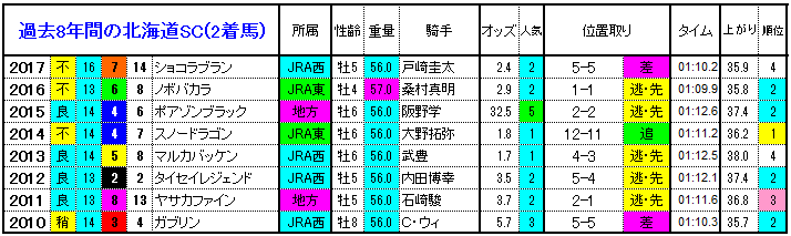 ※コーナー通過順位| 開催日 | 場 | 数 | 1着馬 | 2着馬 | 3着馬 | タイム |